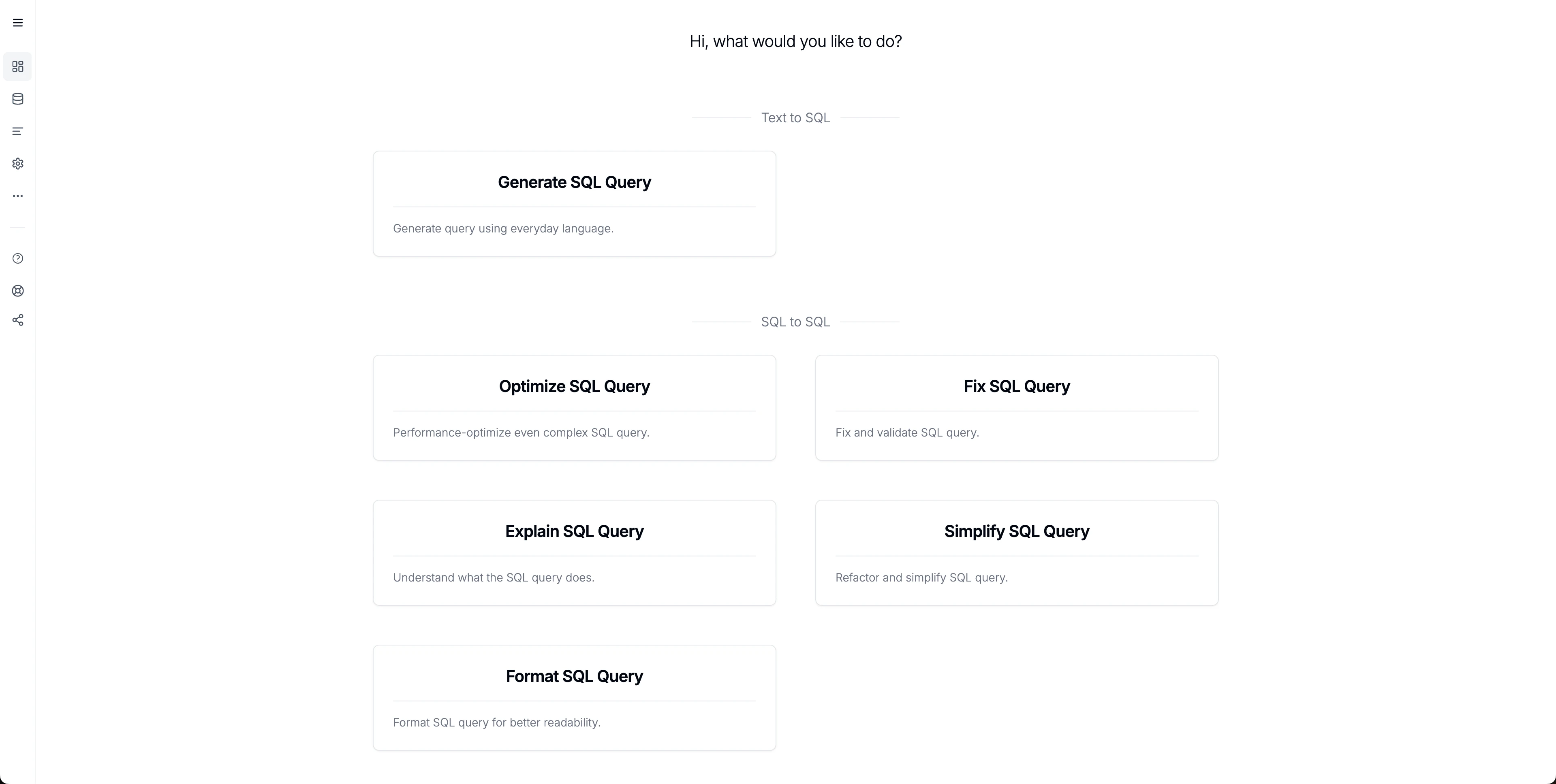 SQLAI.ai is divided into several SQL generators, each serving specific purposes: